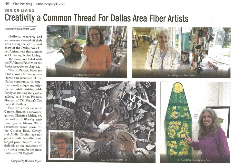 Dallas Area Fiber Artists was proud to present its annual exhibition for 2024, Wild: Perspectives in Fiber, which was on display in Dallas and then in Garland.