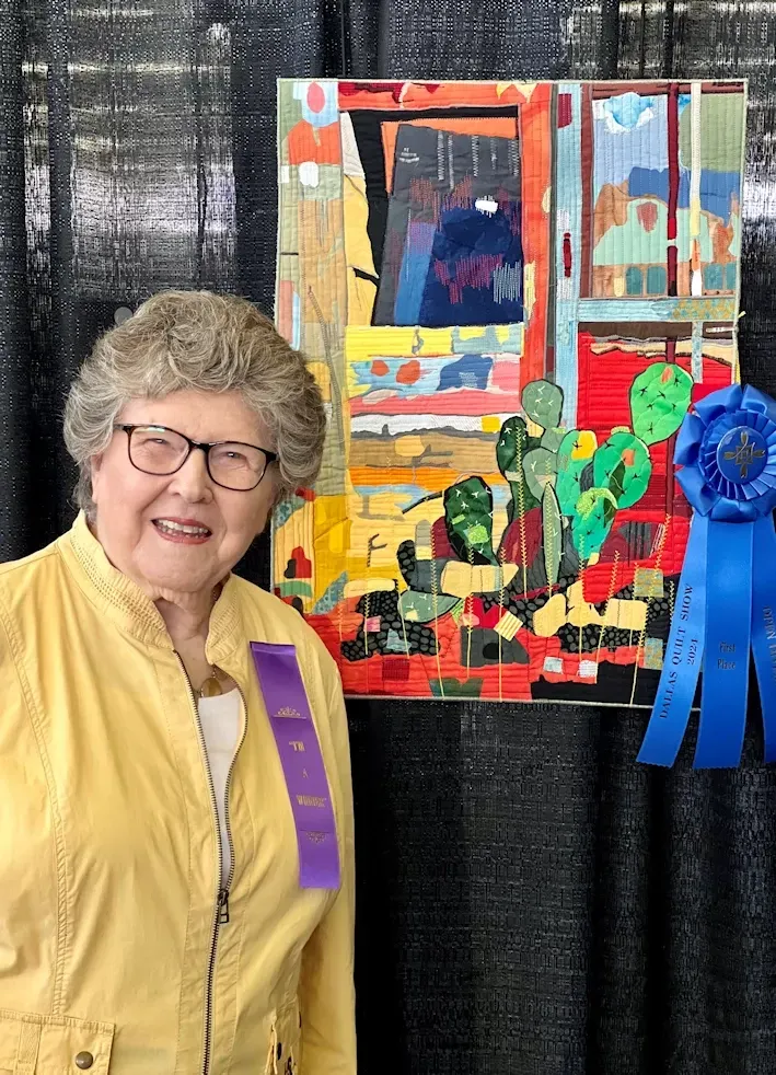 She is an active member of Dallas Area Fiber Artists, American Sewing Guild Plano Chapter, The Quilters Guild of Dallas, and Studio Art Quilt Association.