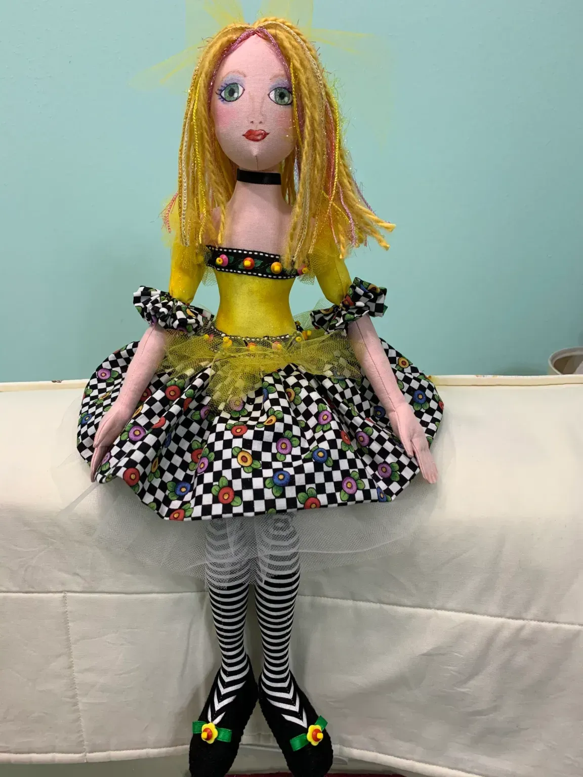 Jami first rose to local prominence as an active member of the American Sewing Guild’s Plano Chapter, where she became a much sought-after teacher and later held the office of president. She found her true calling in dollmaking just over a decade ago, when, during a visit to the Houston International Quilt Show, she was mesmerized by a doll on exhibit. On her return home, she wholeheartedly embraced this new direction in her work, enlisting mentors from her ASG circle and learning everything she could about the artform. Eventually, she began submitting her dolls to national challenges—a step that proved invaluable to her evolution as an artist. The feedback she received from top doll artists helped her to refine both her technique and artistic vision, and encouraged her to continue producing new work.