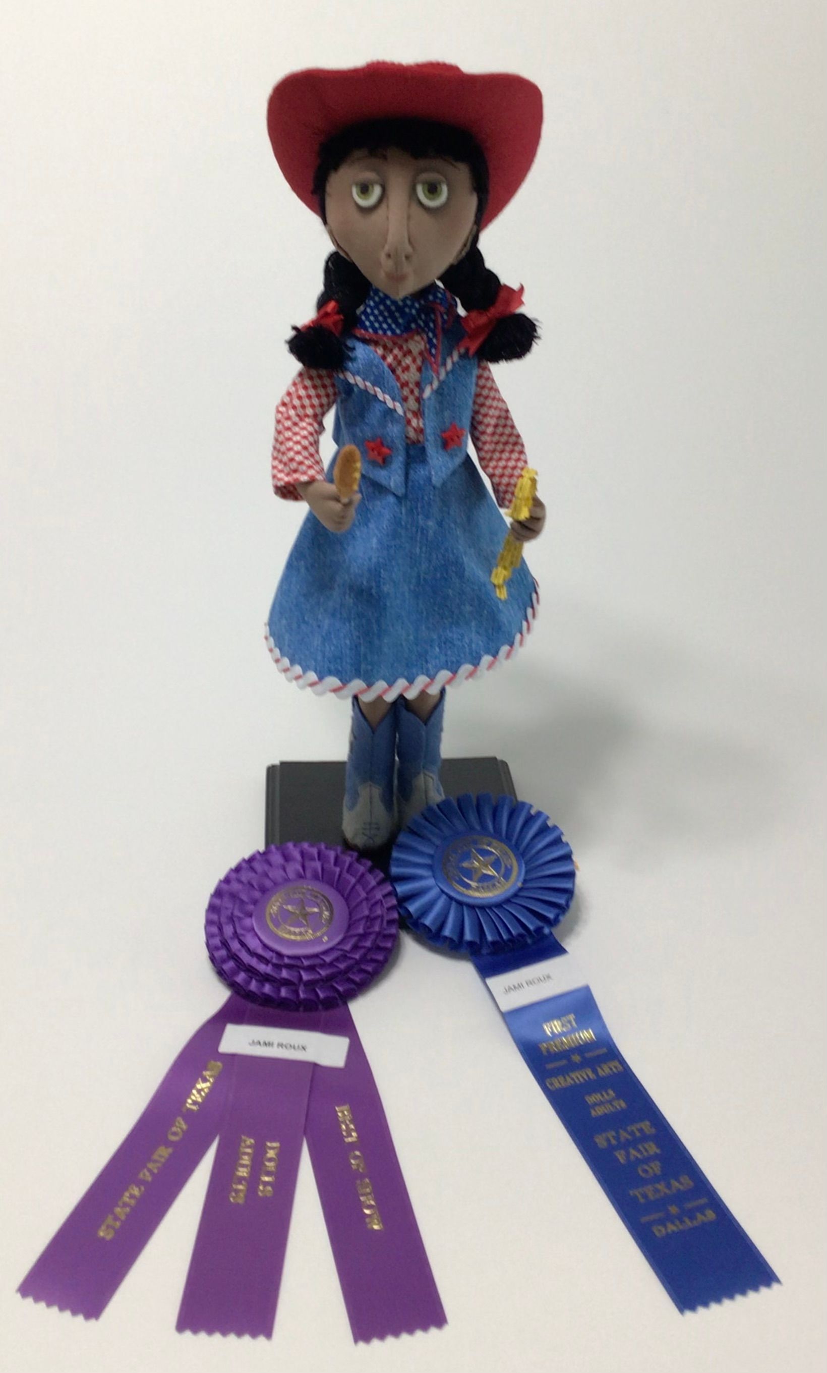 Since these early days, Jami’s work has rarely been out of the spotlight. Her dolls have been shown every year at the Houston International Quilt Show, and her work is also a crowd-favorite at the State Fair of Texas, where her piece