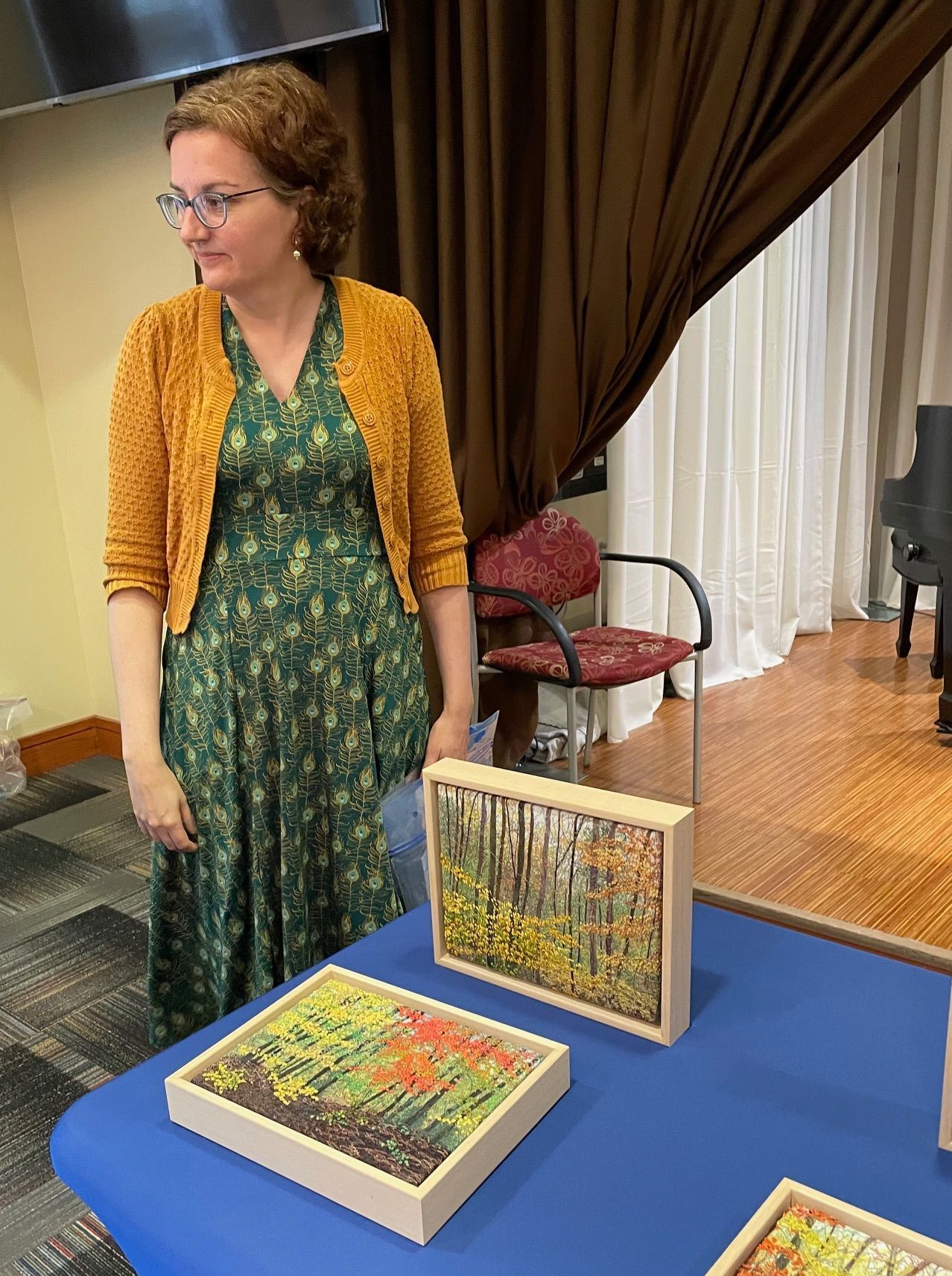 In May we were thrilled to welcome back fiber artist Rebecca Shewmaker, who presented her new thread-painted landscapes, inspired by her recent visits to America's National Parks.