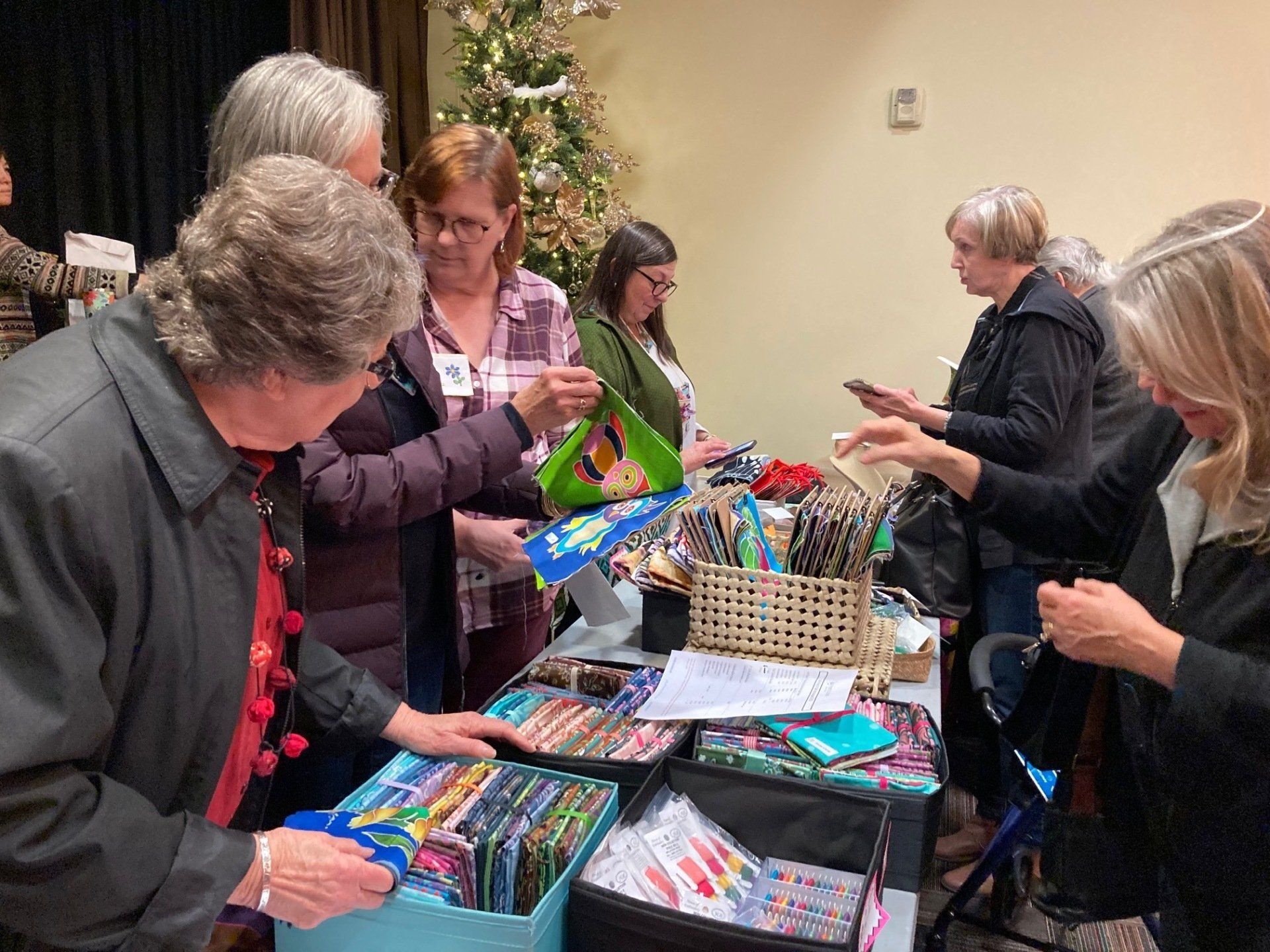 Everyone who attended in-person received a special Malaysian gift. Tina also generously awarded door prizes of luscious Malaysian fabric to lucky winners Christine Miller and Linda Bonner!